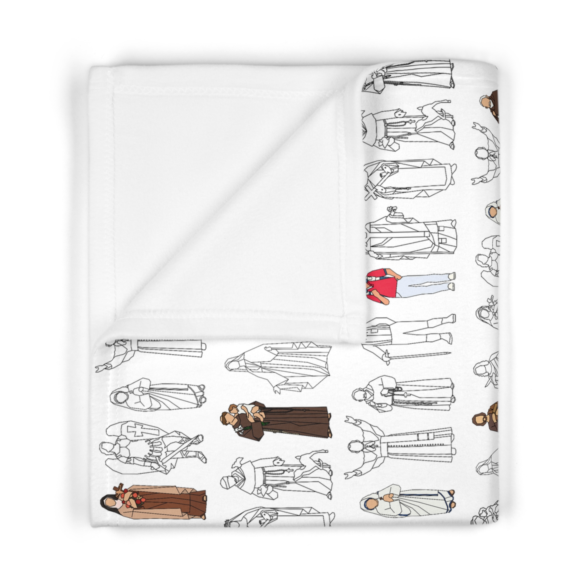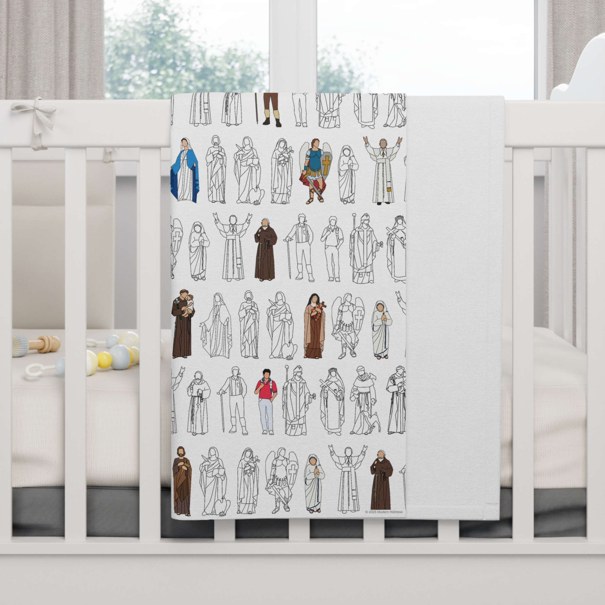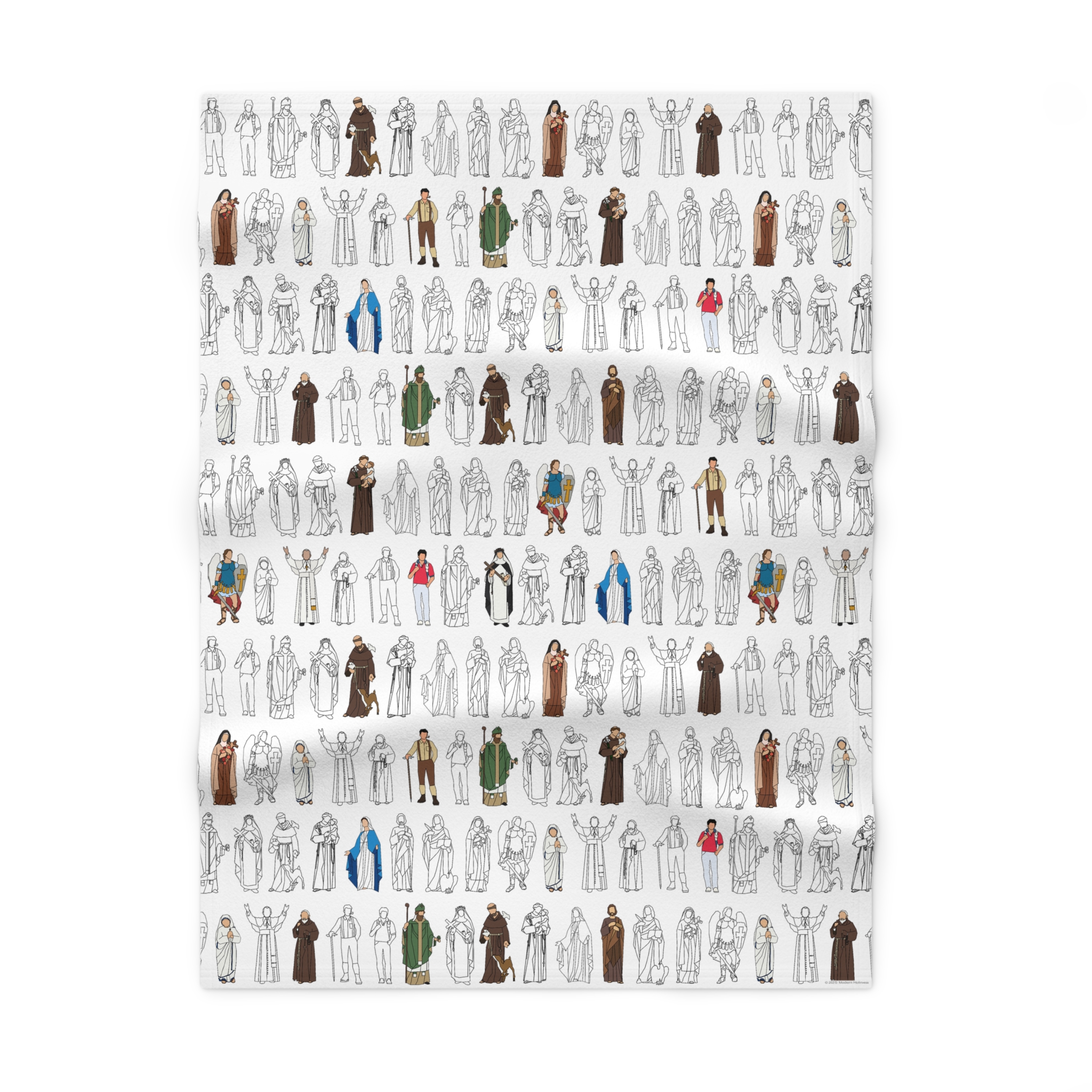 The All Saints Collection features a design that brings together holy friends across the centuries—Mary, Joseph, St. Thérèse, St. Francis, St. Carlo Acutis, and more—illustrated in contemporary line art with bold pops of color. It’s a simple, stylish way to keep the communion of saints close in the ordinary rhythms of life.