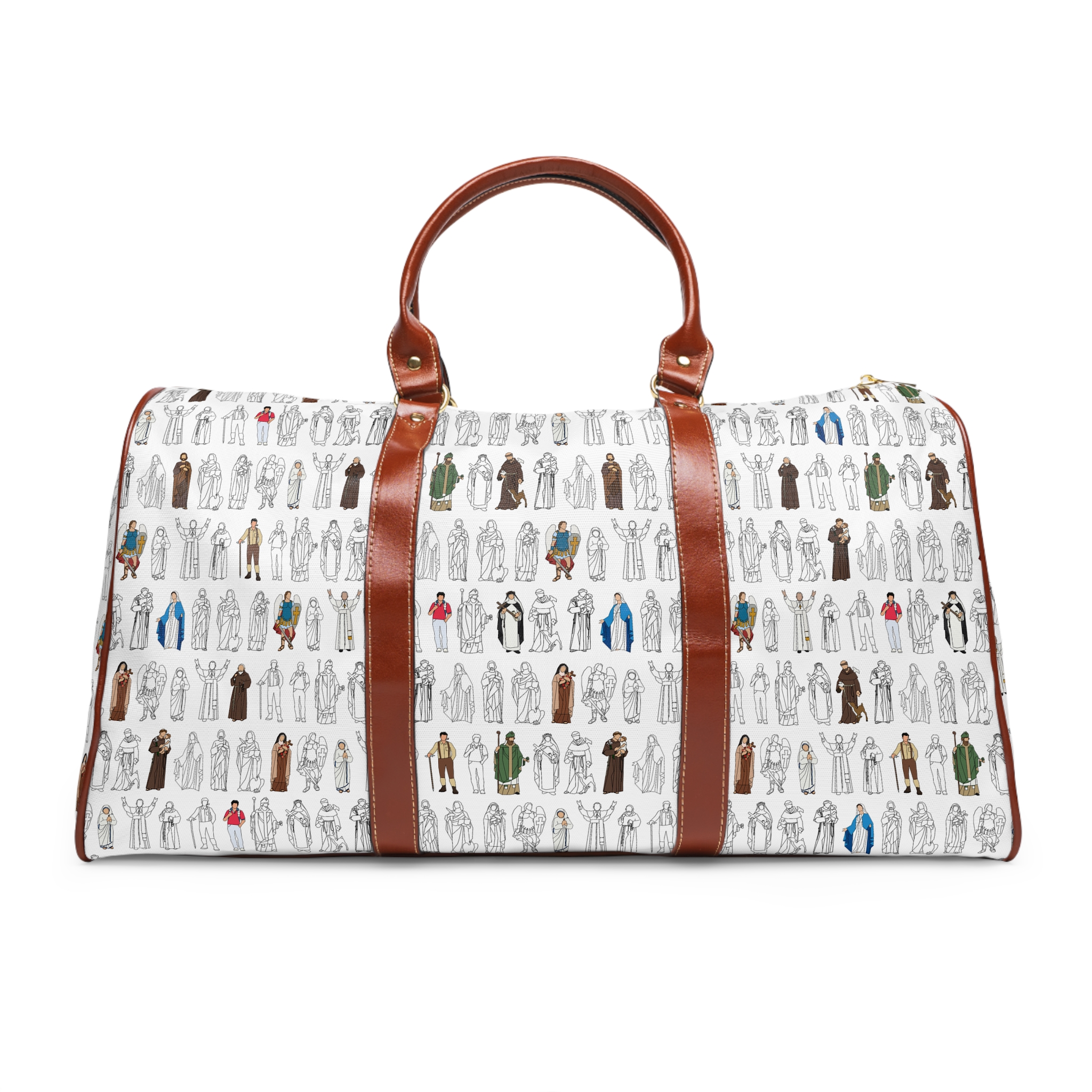 The All Saints Collection features a design that brings together holy friends across the centuries—Mary, Joseph, St. Thérèse, St. Francis, St. Carlo Acutis, and more—illustrated in contemporary line art with bold pops of color. It’s a simple, stylish way to keep the communion of saints close in the ordinary rhythms of life.