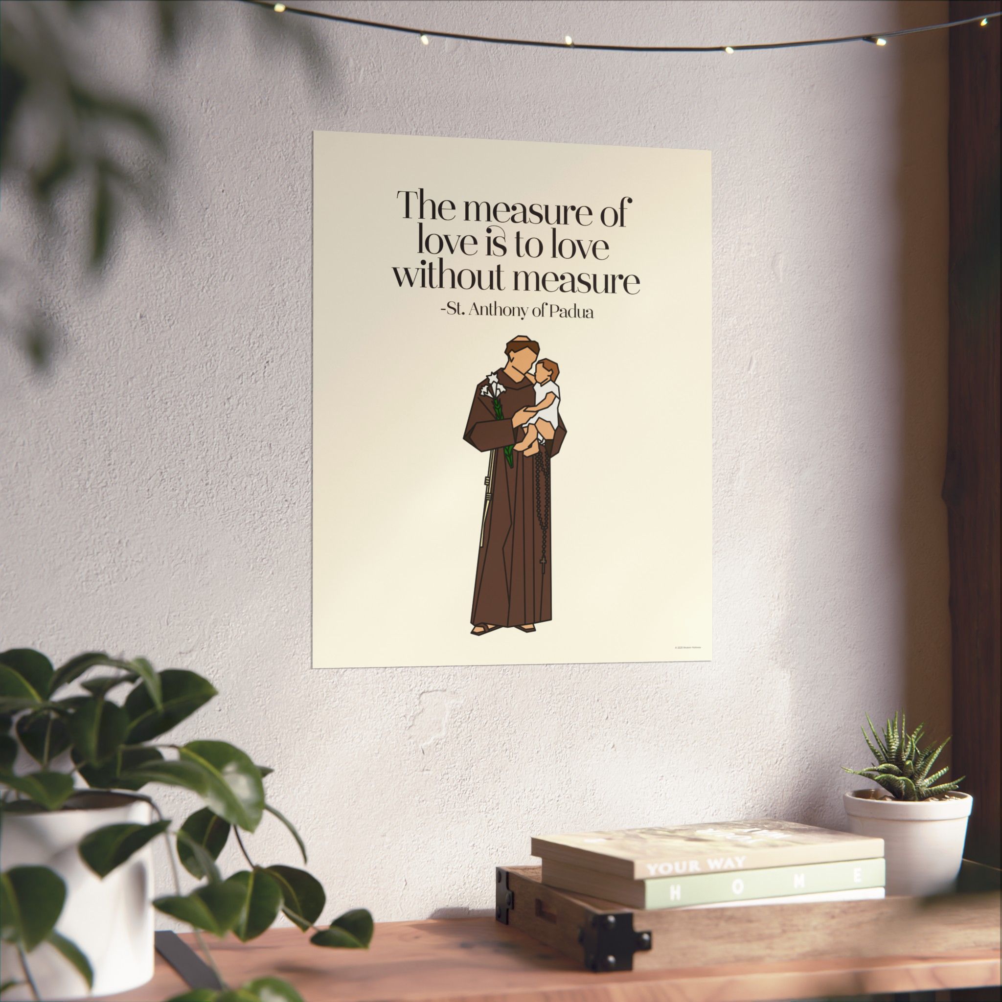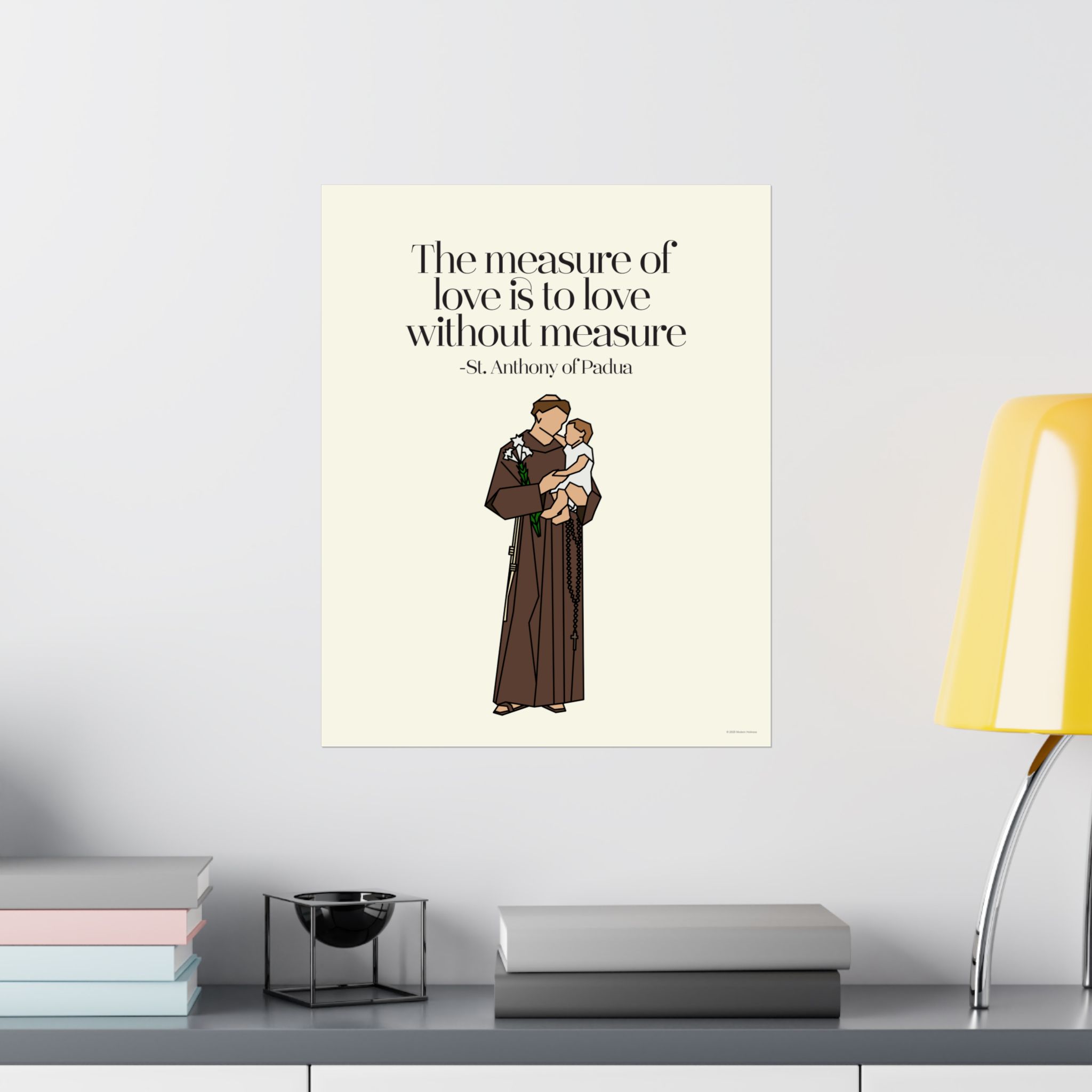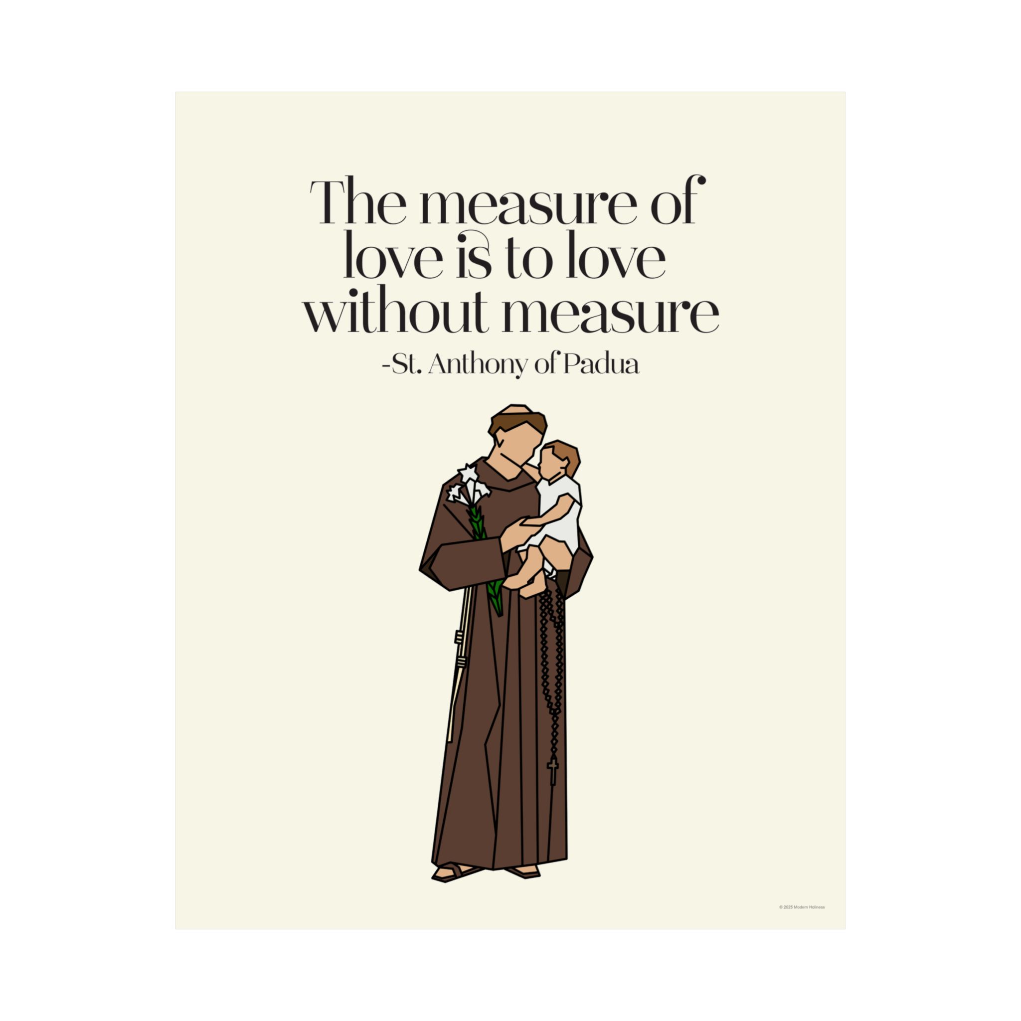 Above him floats the quote “The measure of love is to love without measure,” offering gentle conviction to love as Jesus loved—without condition or limit.